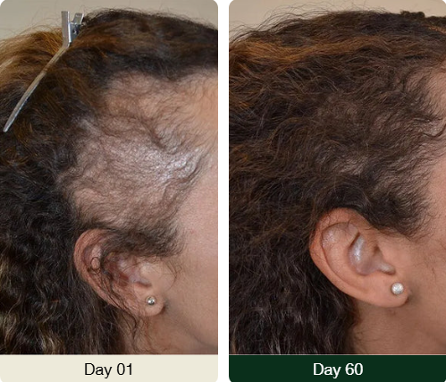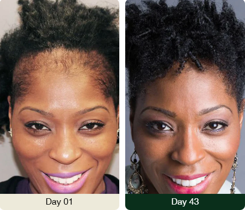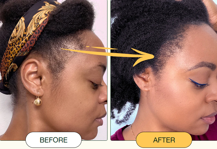 Thin or patchy areas especially around the hairline, edges, and alopecia spots show early signs of regrowth. New baby hairs begin to sprout, giving the hairline a fuller, more defined look.