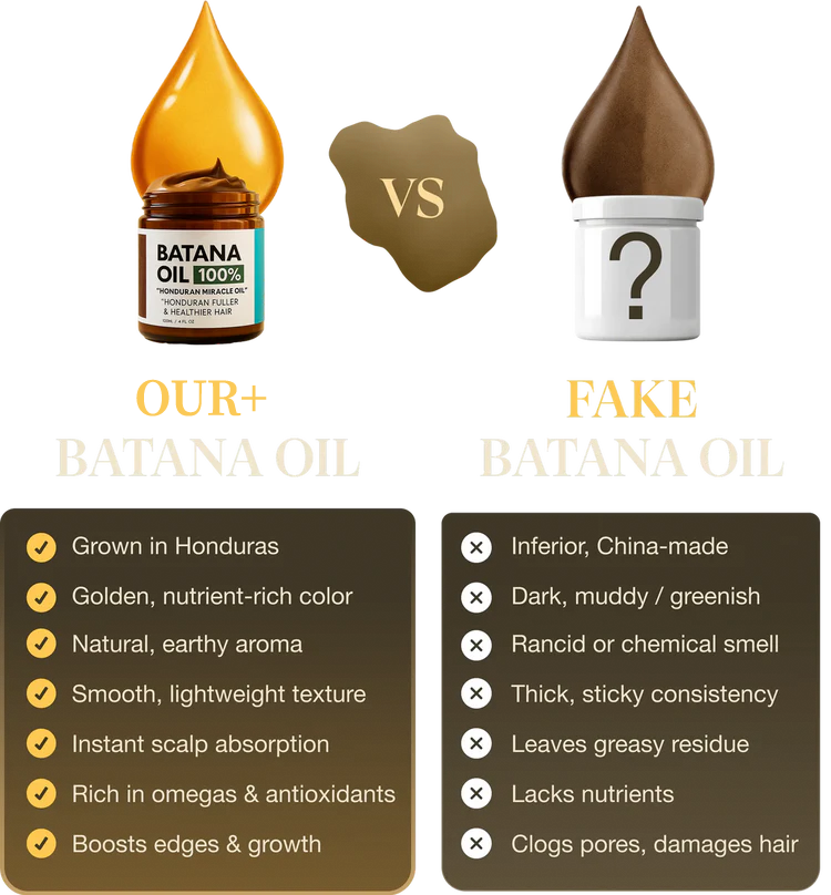 Most oils are diluted or mixed with fillers. Our Batana Oil is 100% pure, hand-harvested in Honduras, and naturally rich in Vitamin E, Omega 3-6-9, and Vitamin A. That’s why it works faster and more effectively on thinning edges and scalp health.